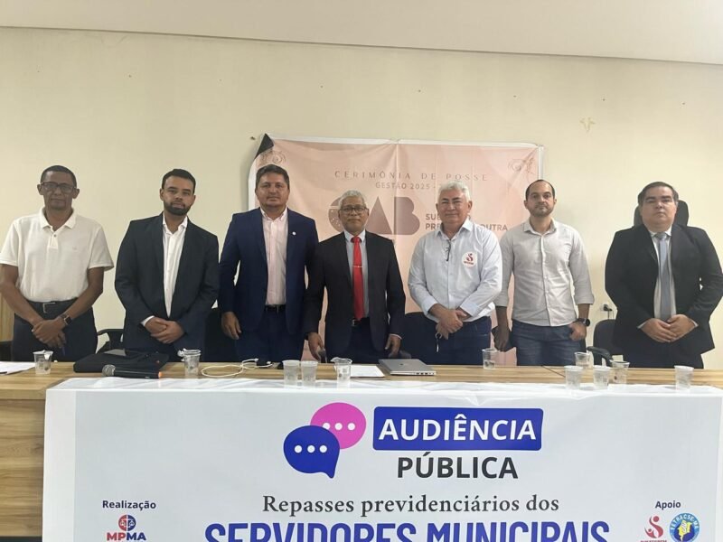 Foi realizada a audiência pública com o tema repasses previdenciários dos servidores municipais nesta sexta-feira, 11 de abril. A audiência foi convocada e mediada pela 1a Promotoria de Justiça de Presidente Dutra na pessoa do Dr. Clodoaldo Nascimento Araújo. Estiveram presentes representando o INSS, o gerente da agência local, Sr. Jailton, pelo município o procurador Dr Éder Lima, o secretário de administração e finanças, Rômulo Carvalho e o responsável pela folha de pagamento e setor contábil, Dr. Joaquim Neto.