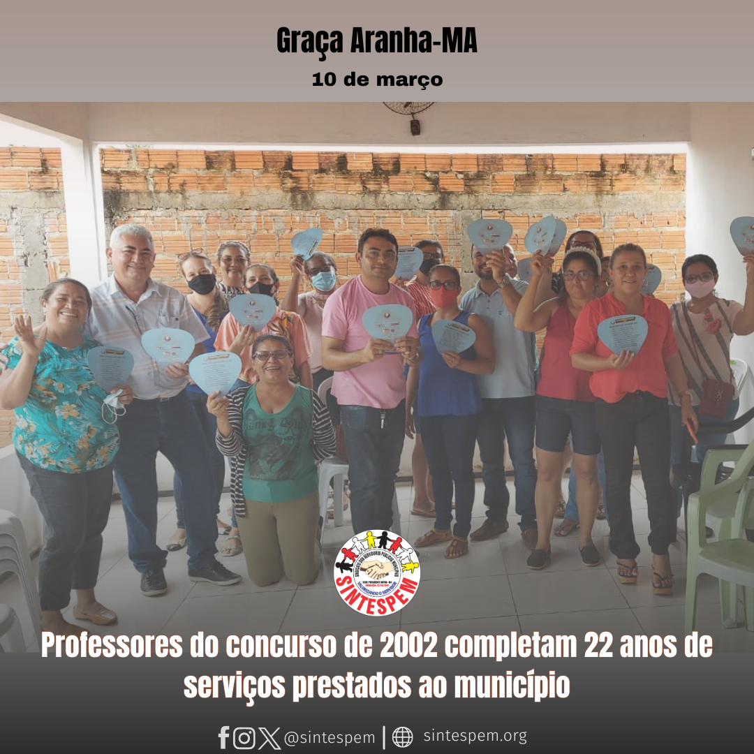 O SINTESPEM subsede de Graça Aranha homenageia todos os professores e professoras graçaranhenses pelos valorosos e dedicados 22 anos de